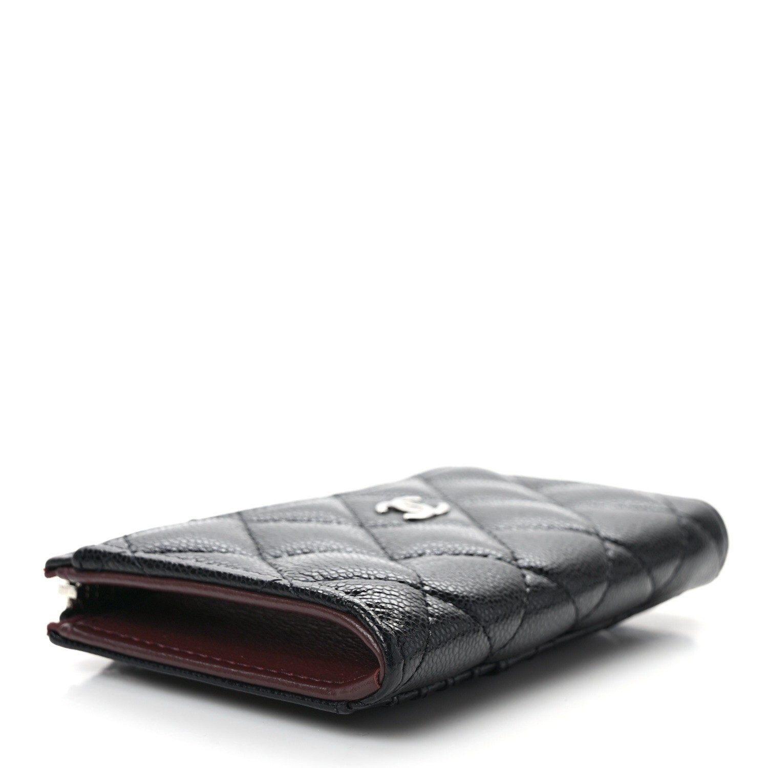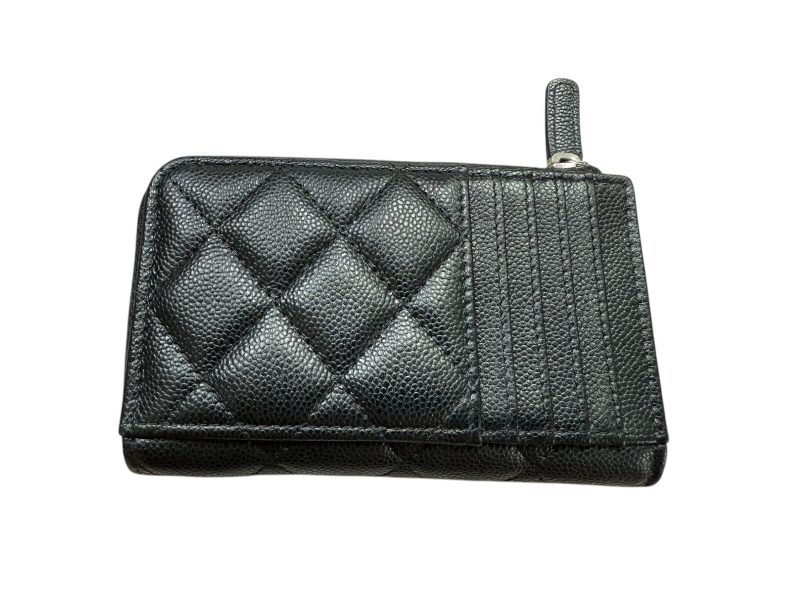 CHANEL Caviar Quilted CC Zip Around Card Holder - Black | Authentic Luxury Elegance Condition: Excellent Pre-Owned Includes: Chanel Card Holder, Original Box Material: Black Diamond-Quilted Caviar Leather Hardware: Silver-Tone CC Logo Interior: Burgundy Fabric Features: Zip-Around Closure, Front Pocket, Rear Card Slots I bought this card holder last year in a boutique in South Korea. After a few uses, I decided to re-home this lovely caviar leather card holder! It is very durable, classic, and elegant! Authentication guarantee! This piece is in excellent condition , with only light signs of gentle use—such as faint exterior scuffs, minor stretch in card slots, and minimal surface marks on hardware.