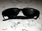 Enjoy the timeless elegance of high fashion with these classic CHANEL Quilted Sided, Camelia Flower, CC Acetate Sunglasses in black! These have a serial number: BC2726746 stamped on the lense, and they are style number 5111. Each lense is stamped with 'CHANEL' at the top. These glasses are pre-owned and do show signs of wear. The camelia flower has some of its white paint that has chipped, and the model number is smudged on the interior arm. The lenses have scratches present, however, when worn, this is not visible. They still have life left in them, so please enjoy them at a greatly discounted price. My items are stored in fragrance free, pet free, smoke free storage. If you need further assistance please message me and I will be happy to help. All offers are welcome and will be considered. Thank you for looking and happy shopping! 🛍