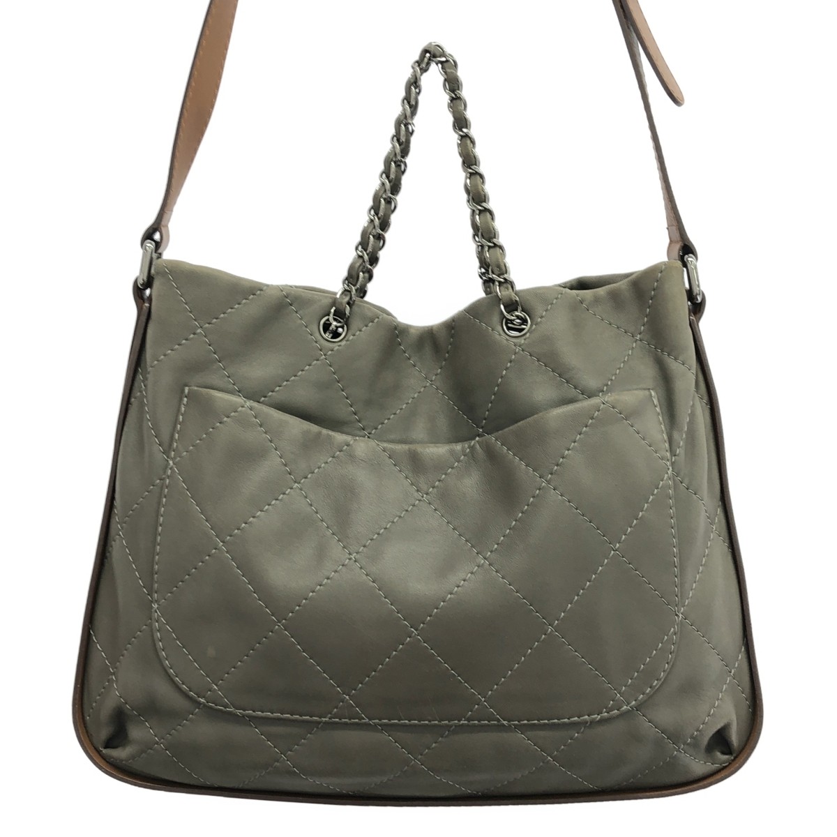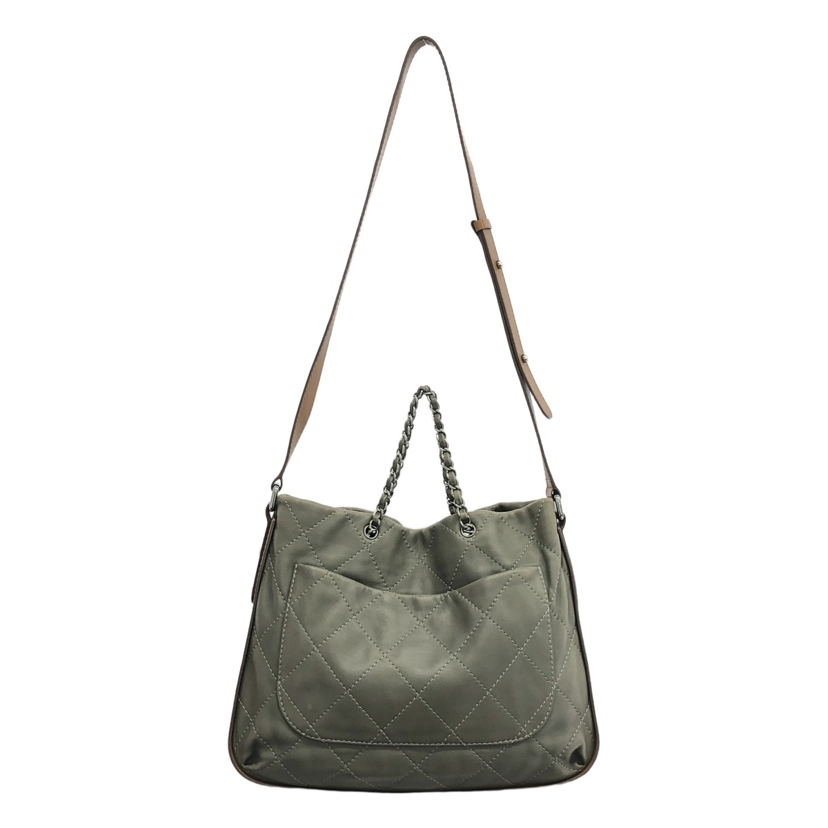 $ 803.2CHANEL Lambskin Beige Handbag with Silver Hardware Preowned 5ga0502h