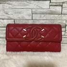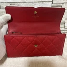 This beautiful CHANEL CC wallet is crafted from high-quality caviar leather in a stunning red color. The wallet features a quilted filigree flap design with the iconic CHANEL logo accent. It is a long wallet style that is perfect for women who prefer a more elegant look. The wallet has multiple compartments for credit cards, checkbooks, and other essentials. It is a must-have accessory for any fashion-savvy woman who wants to keep her belongings organized. With its durable leather material and stylish design, this CHANEL wallet is sure to last for years to come.