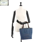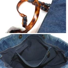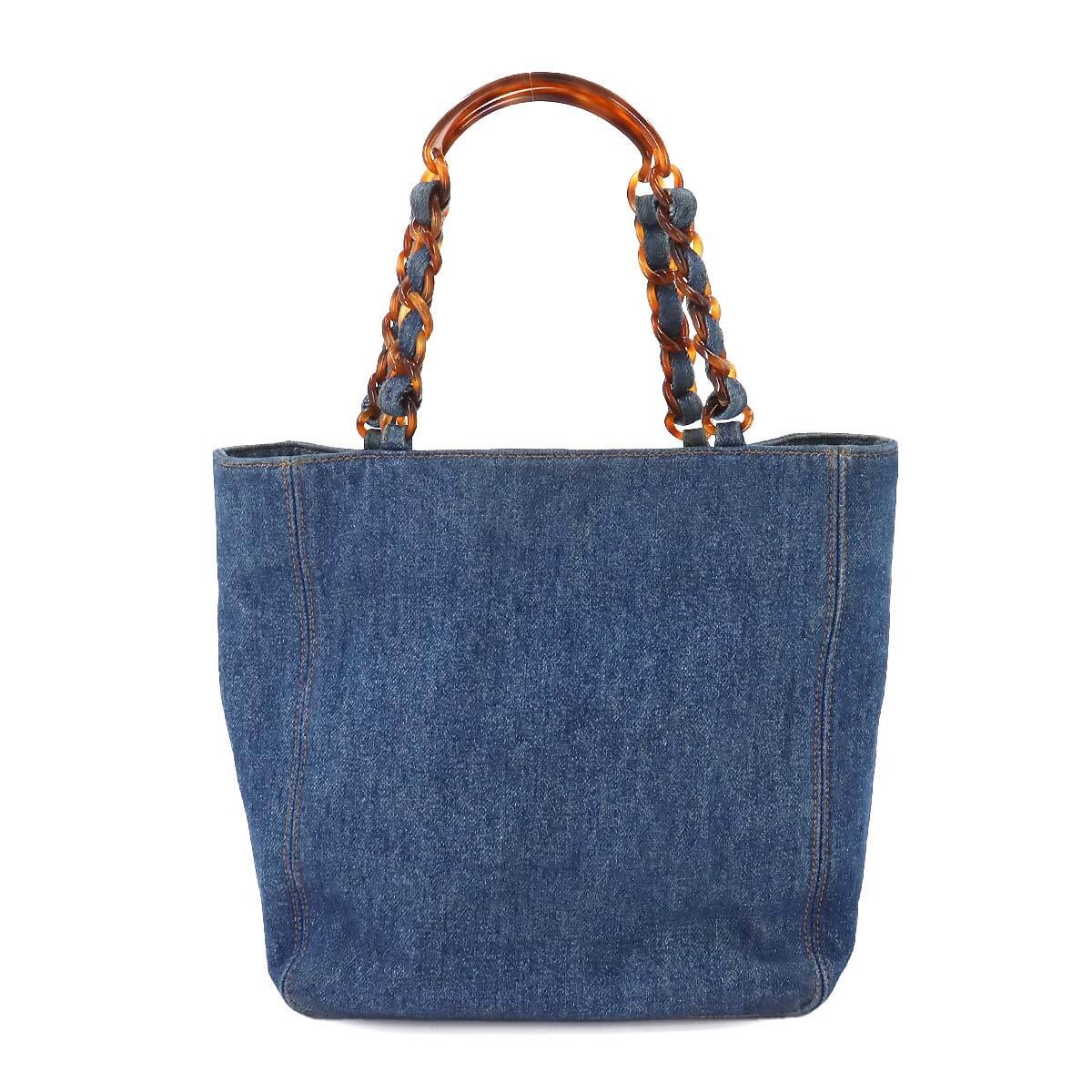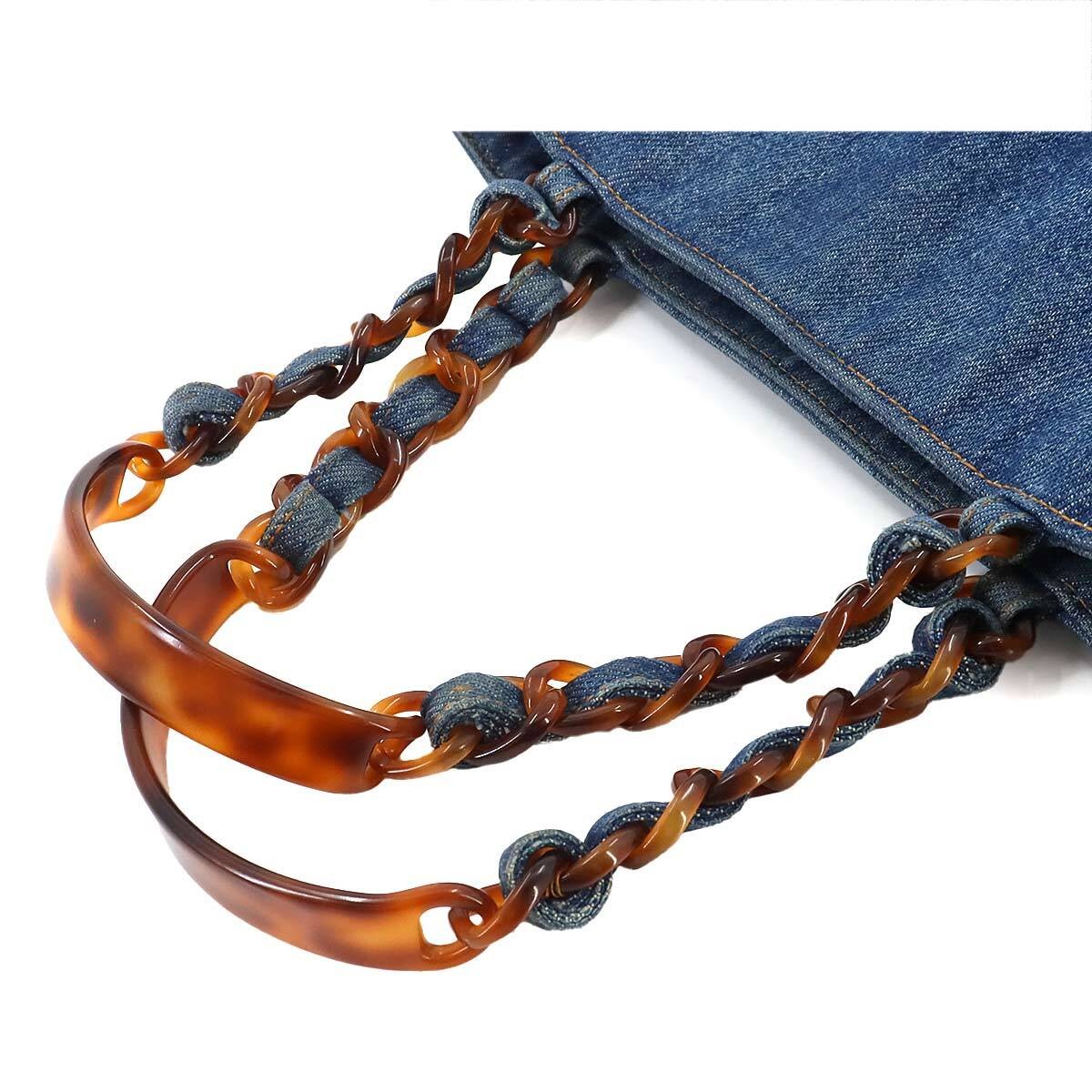 CHANEL Tortoise Pattern Plastic Chain Tote Bag Denim Blue Coco Mark Vintage Plas