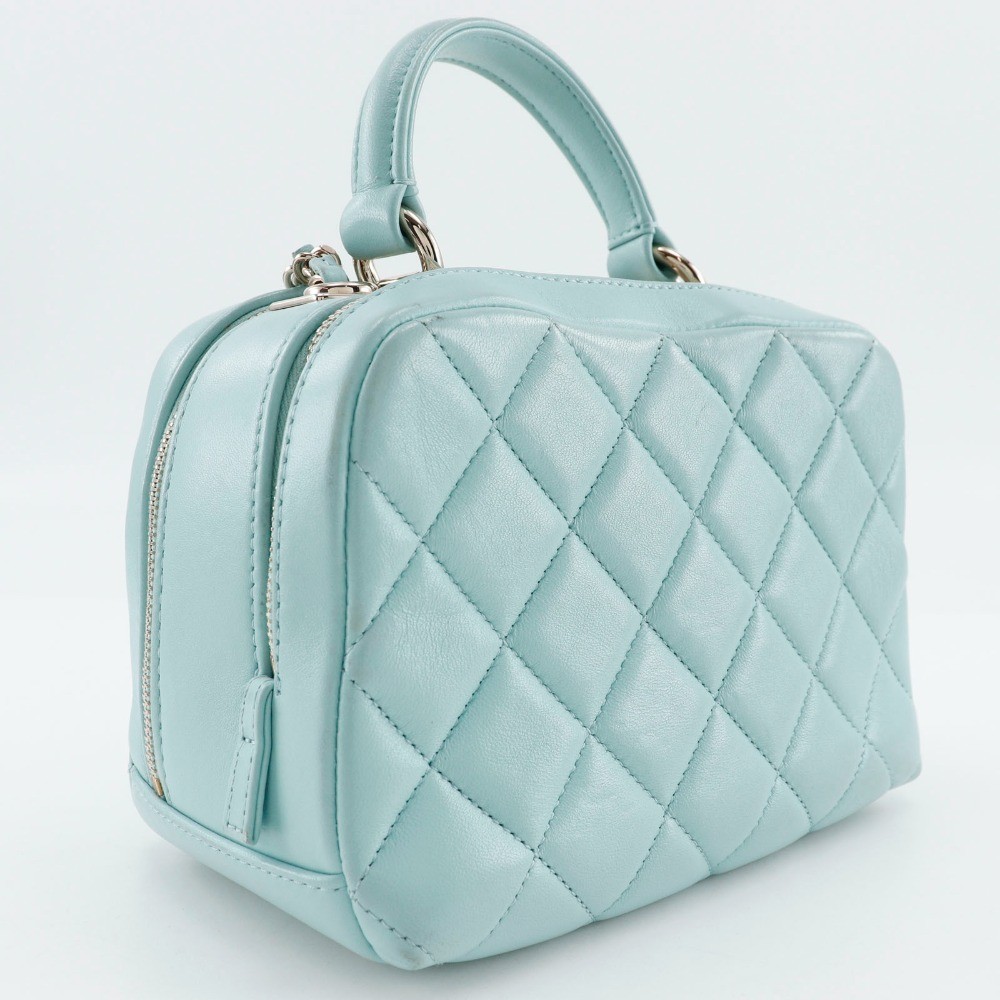 CHANEL Trendy Coco Mark Matelass 2WAY Shoulder Handbag Calf Light Blue Ladies I2