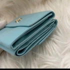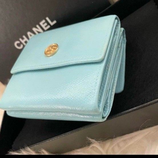 CHANEL Tri fold Mini Wallet Coco Button Light Blue W Hook Coco Mark BN517225