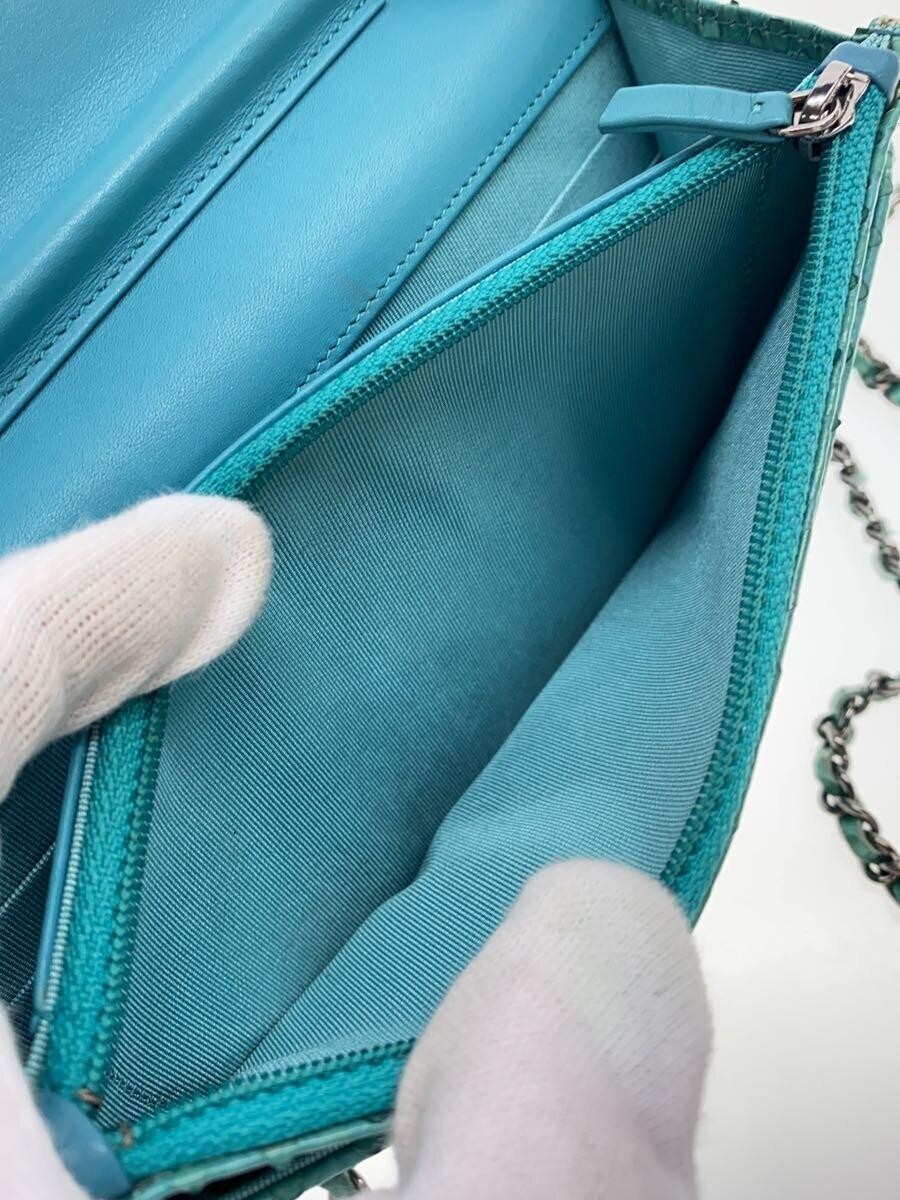 Description Authentic CHANEL Chain Wallet WOC Turquoise Snakeskin Leather CC Blue Used - Condition This item has some signs of use. Please check the photos. - Size and Specifications Actual Size (cm): Height 12.5 Width 19 Thickness 3 Other Sizes チェーン部分:126 Additional Details - Thank you very much for your interest. - Please note that this is a pre-owned (used) product. - As it is also available for sale in stores, the condition may change slightly over time. - There may be minor damage or dirt not visible in the photos, and some accessories may be missing . - We manage our inventory carefully, but in rare cases, the product may sell out . - Depending on your monitor or device, the color may appear slightly different from the actual product. - If you have any questions or concerns , please feel free to contact us anytime. Shipping Information FREE SHIPPING - The product will be shipped from Japan . - Shipping Method: Japan Post or DHL or Fedex - Delivery Period: Usually takes 2–3 weeks (Delivery may be delayed due to global events, weather conditions, customs processes, or other unforeseen circumstances. ) Important Notes - Import duties, taxes, and charges are Not included in the product price or FREE SHIPPING cost. - These charges are the buyer's responsibility . - Please check with your country's customs office to determine what these additional costs will be prior to bidding or buying.