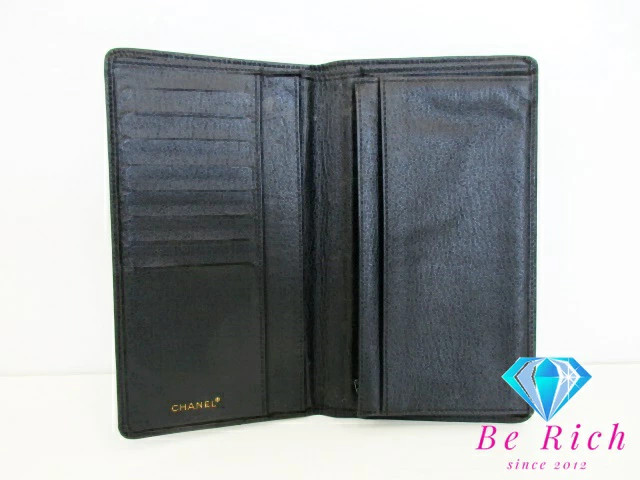CHANEL Two Fold Long Wallet Black Leather Coco Mark Logo Long Wallet CHANEL Used