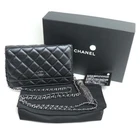 CHANEL Vintage Calf Matelass Chain Wallet Shoulder Bag Black Ladies Used Excelle