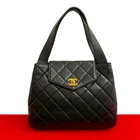 CHANEL Black Lambskin Coco Mark Tote Bag with Chocolate Bar Design