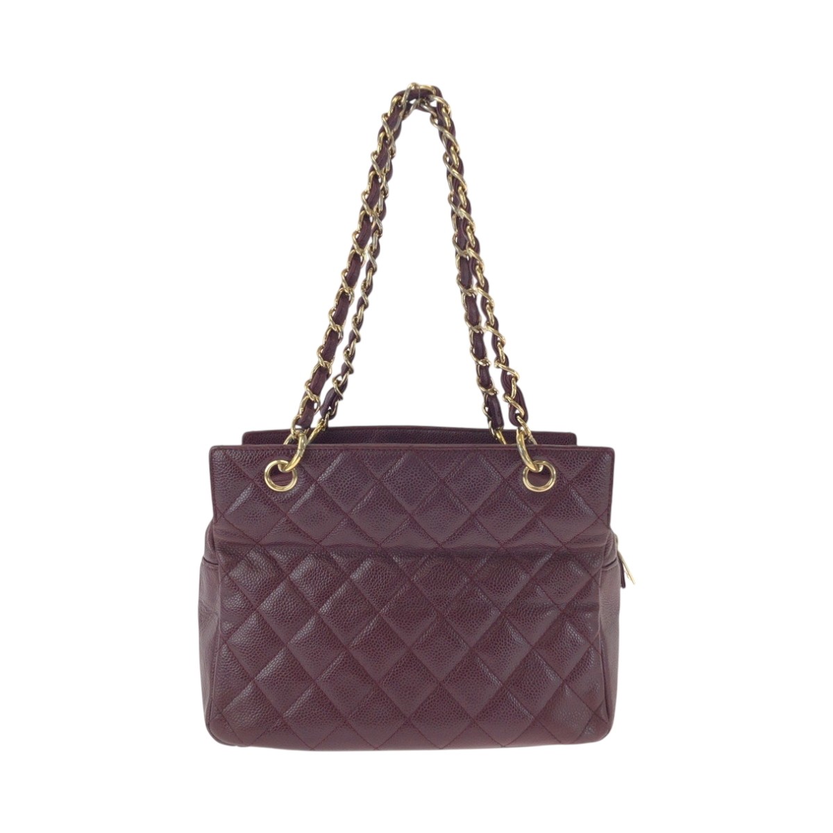 CHANEL Vintage Matelass Coco Mark Bordeaux Caviar Skin Chain Tote Bag Shoulder B