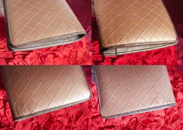 CHANEL Wallet Matelass Chain Shoulder Stitch Long Wallet Gold Beige Used c 002