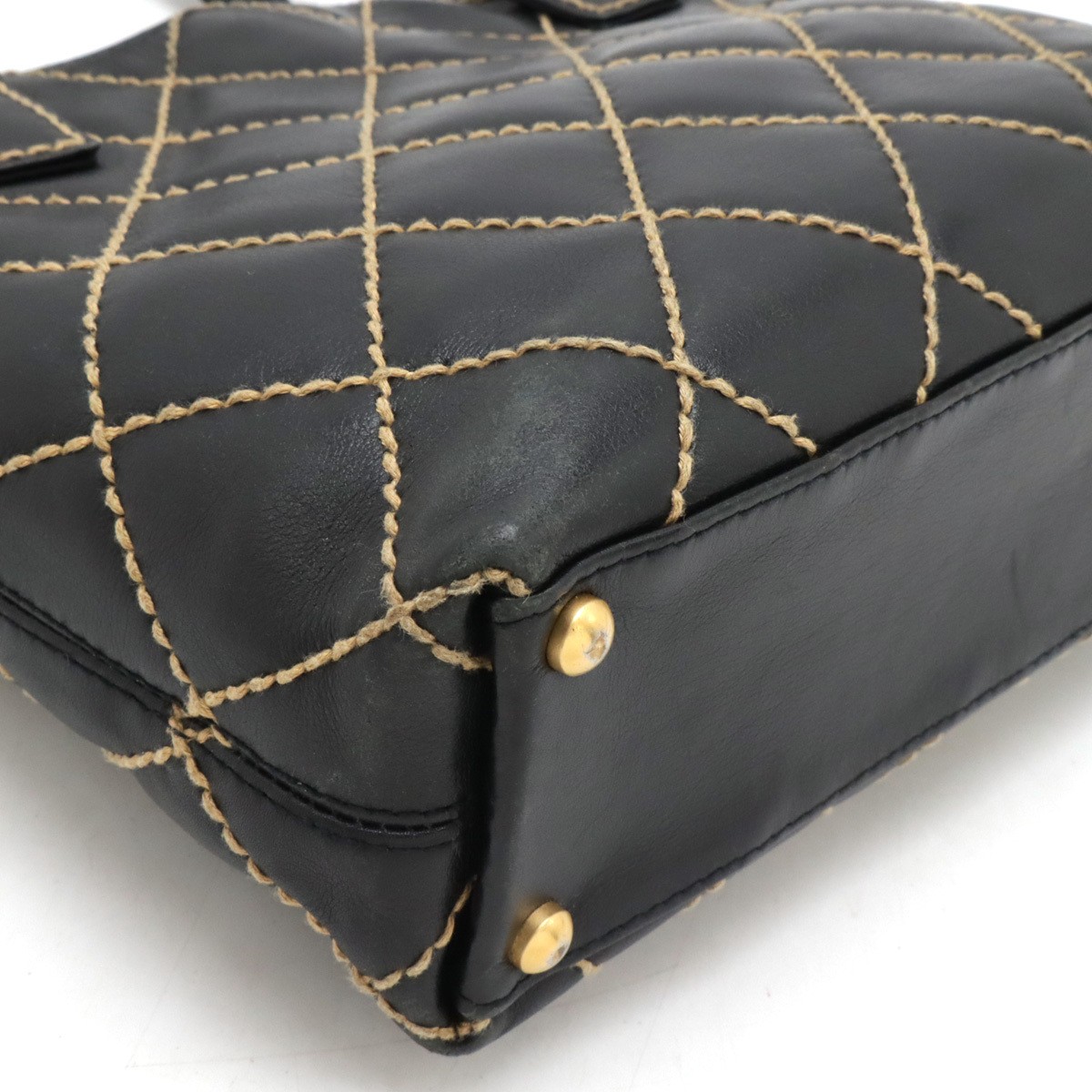 CHANEL Wild Stitch Coco Mark Black Leather Tote Bag with Gold Hardware A18126