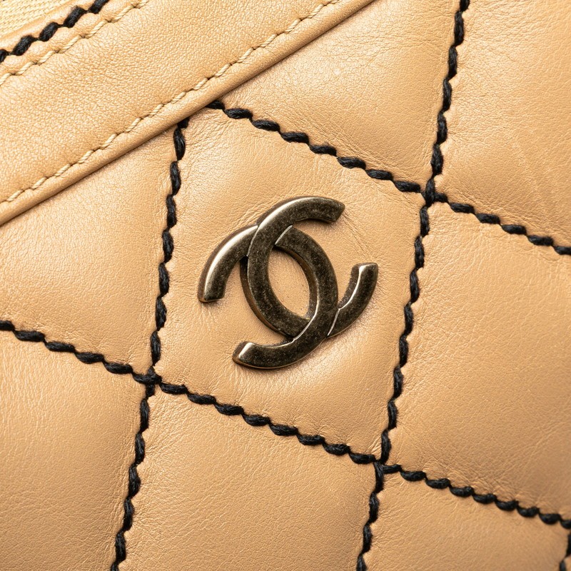 Thank you for coming my store ! Description CHANEL - Product Type: Ladies' Handbag - Model: Coco Mark Series, Line Wild Stitch - Color: Beige and Black - Material: Leather - Dimensions: W approx. 30cm x H approx. 24cm x D approx. 13cm - Handle Height: approx. 16cm - Features: Double zipper closure, one open pocket outside, one open pocket inside, one zipper pocket inside - Condition: AB (Very good, minimal signs of use) - Exterior: Slight scratches, light stains, minor corner scuffs, handle with slight dirt and glue stains, slight shape distortion, zipper pull with glue stain - Interior: Light dirt, some thread fraying at side openings - Note: No accessories included Please note: Our size measurements are listed in centimeters. If you would like to know the size in inches, please multiply the centimeter value by 0.393. Even if it is shown in the photo, it may not come with a storage bag, card, paper bag, etc. when not stated. Please ask about the availability of accessories prior to purchase. All my products are 100% Authentic. Please be assured that we only sell items that have been appraised by specialists, mainly reuse stores and pawnshops. Please see photos for item condition. Please feel free to contact us if you have any question. We pack carefully. Payment Various payment options will show during checkout. Shipping (Expedited international shipping) I use DHL or FedEx or Japan Post. It takes around 3-7 days. International Buyers - Please Note: Import duties, taxes, and charges are not included in the item price or shipping cost. These charges are the buyer's responsibility. Please check with your country's customs office to determine what these additional costs will be prior to bidding or buying.
