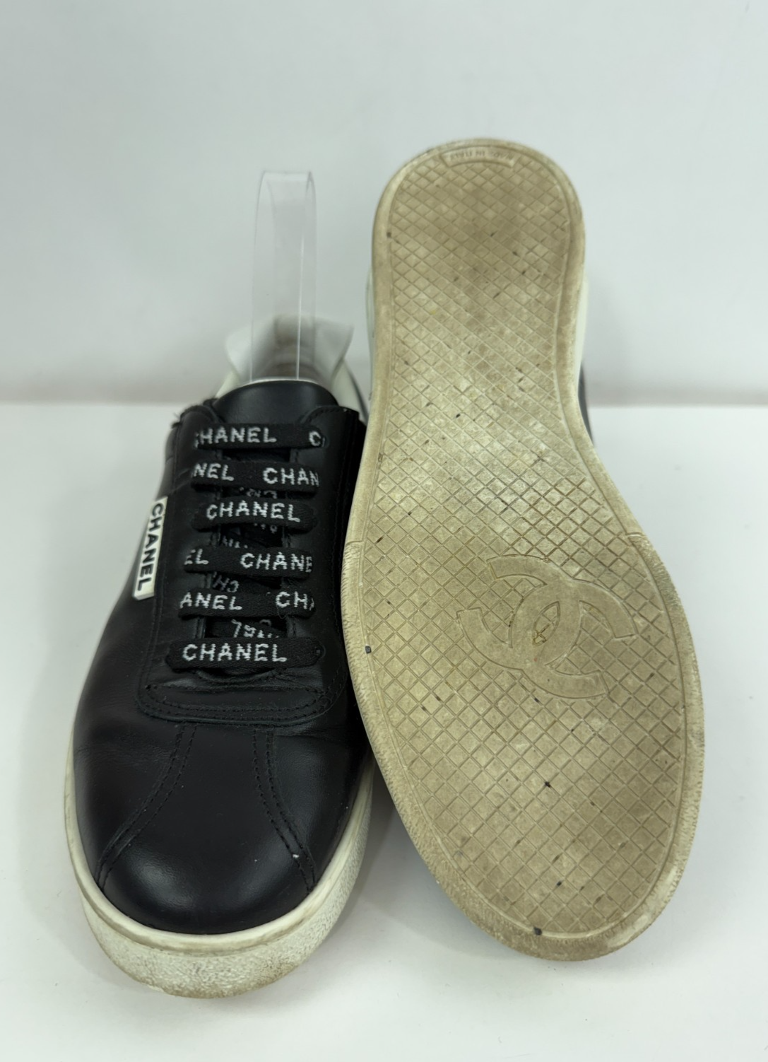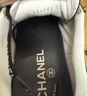 CHANEL Women's White Leather Suede Trainer Sneakers Interlocking CC Sz 36.5 - 6