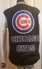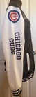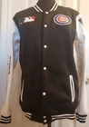CHICAGO CUBS JACKET Letterman styled jacket Chicago Cubs logo on left front & MLB logo on right front 7 snap button closure 2 white trimmed pockets Large Chicago Cubs logo on the back with CHICAGO CUBS name CHICAGO CUBS on each sleeve, Cubs logo also on one sleeve and MLB logo on the other. Black and white ribbing at cuffs, waist and collar. Men's size small, size tag is still attached this is NEW and NEVER worn Light weight, not sure the material. feels like a fleece Photo is the actual item you will receive. I have it on a female dress form in order to get good photos all around it, but this is a men's jacket. Enlarge photos for a good look at it. Please ask all questions before auction ends because all sales are final. No International bidders. Thank you!