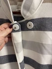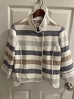 Elevate your wardrobe with this stylish CHICO'S women's jacket. The one-button front and long sleeves make it perfect for any occasion, whether it's a casual day out or a business meeting. The jacket features a soft cotton blend material in a colorful striped pattern that is sure to turn heads. With its snap closure, this jacket is easy to wear and provides a comfortable fit. It also has several features such as a collared neckline, stretch fabric, and pockets. The unlined design makes it lightweight and perfect for summer, fall, or spring. This jacket is machine washable and comes in size 0, making it a great addition to any wardrobe.