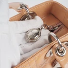 Pixel Safari Fashion eBay Template Free Shipping - 30 Day Return Policy - Guaranteed Authenticity CHRISTIAN DIOR Lady Dior Medium Cannage Patent Luxury Designer Handbag WITH FREE AUTHENTICITY CHECK! Current New price: €5900.00 | Now €1550.00 (-74%) Ask question eBay Store DESCRIPTION DETAILS Luxury Designer Handbag ·These beautiful small Lady Dior tote was made in Italy in 2013 from patent leather (coated calfskin). The bag is in very clean condition but unfortunately with light stains on both sides. See pictures. With shoulder strap. The colour is similar to beige/dusky pink. Totally clean inside and out and free of odours. The current new price is £5900 ·· For more details and measurements click on DETAILS button. To see the condition and details correctly, all images are high resolution and enlargable. CONDITION N: New with/without tags A+: Like new, used 1 - 2 times A: Very well preserved, treated with care B: Normal signs of use C: Moderate signs of use D: Significant signs of use* E: Needs Repair / Scrap* AUTHENTICITY GUARANTEE We authenticate our products with great care and we also work with independent authenticators. We guarantee the authenticity of our products. If you receive an authentic product from us, we will refund 120% of the purchase price. Differential taxation according to § 25a UStG. Therefore no VAT identification on the invoice. The pictures are part of the item description. All company and brand names given here as well as images, trademarks and figures are the property of their owners and are used only for identification and description of the products. Bag for Ladies Datacode 01-BO-0163 Style Handbag Material Patent Leather Lining Linen Color: Beige Closure Zip fastening Interior pocket a small Accessories Shoulder strap, dust bag Size Small Height 20cm Length 24cm Width 11cm Handle drop 11cm Handmade YES Vintage YES Made in Italy Shipping Free shipping takes place within 1 business day by insured DHL Parcel. Collection from our shop in Munich during opening hours. Payment We accept the following payment methods: Bank transfer (prepayment in advance) Paypal Credit Card Cash on site Return You have the right to cancel this contract within 30 days without giving any reason. Design & Development by Pixel Safari wonderlustking*emporium https://www.ebay.com/str/wonderlustkingemporium #1e1879 fashiontemplate 160
