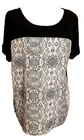 Christopher & Banks Women's large shirt/top. Front features polyester material in black & white snakeskin graphic. Back is solid black. High low hem tunic. Button cuff sleeves.. Condition is Pre-owned.