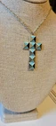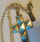 † CHUNKY Religious CONTEMPORY Cross Necklace 18" † Gold/Turquoise ROCKER 1987