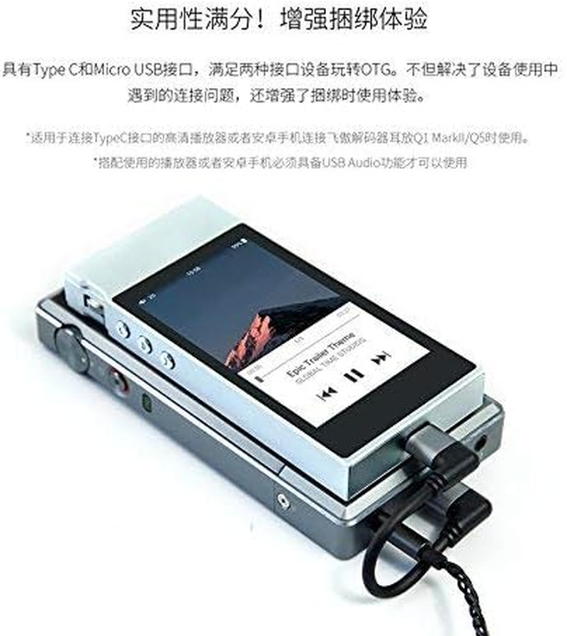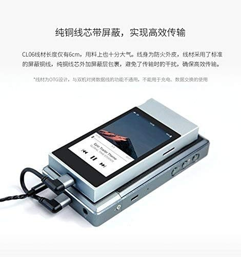 It's mainly used for connecting music player or Android phone with Type C port to headphone amplifier & DAC such as Fiio Q1 Mark II or Q5; Compatible with SONY PHA-1A/2A/3; Compatible with OPPO HA-2 SE; CHORD mojo. It's designed according to the OTG specification, which can't be used for charging or data exchanging. It's nomal that some phones would give the notice of reverse charging when the Type C cable plugged in, but there will be no actual power output. The music player or Android phone must be equipped with USB Audio function. Specifications: Cable Length: 6cm(excl. the plugs); Cable material: High purity copper wire with fireproofing sheath and shield; Type C plug: Lshape, aluminum shell; Micro Plug: L shape, aluminum shell; 1. It's mainly used for connecting music player or Android phone with Type C port to Fiio headphone amplifier & DAC Q1 Mark II or Q5; Compatible with SONY PHA-1A/2A/3; Compatible with OPPO HA-2 SE; CHORD mojo. 2. It's designed according to the OTG specification, which can't be used for charging or data exchanging. 3. It's nomal that some phones would give the notice of reverse charging when the Type C cable plugged in, but there will be no actual power output. 4. The music player or Android phone must be equipped with USB Audio function.