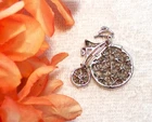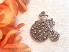 Up for sale is a beautiful brooch featuring a Victorian bicycle. This brooch measures approximately 1 3/4 inches by1 3/4 inches. It has a locking bar type clasp on the back to hold it firmly in place. This beautiful brooch is perfect for any occasion! SHIPMENT TRACKING INCLUDED FOR ALL US DESTINATIONS This item is from a nonsmoking home. NOTE: Please read and fully understand the item description and the following paragraphs prior to bidding on this item. If you have any questions, please contact us via E-bay message before you place a bid. PAYMENT POLICY: Payment of the final auction price, listed shipping charges, and shipping insurance (if purchased) must be received within 7 days of the end of the auction. We prefer PayPal. SHIPPING CHARGES: Below is a list of our shipping charges, we automatically combine shipping costs on multiple purchases of jewelry or similar size items, we also combine shipping on different size items, please ask for a quote or wait for an invoice before paying for your multiple item order: US DESTINATIONS .............................. INTERNATIONAL DESTINATIONS $4.29 ...................................................... GLOBAL SHIPPING PROGRAM Add $0.50 for each additional item to US destinations REMINDER: When purchasing more than one item, please wait for us to send you an invoice with the total price before paying for your items, this will ensure you receive the full benefit of our combined shipping. NOTE: These shipping charges are for US Postal Service First Class Mail to US destinations only; other shipping methods are available at an additional cost to the buyer (see the paragraph that outlines our shipping methods below). SHIPPING METHODS: We ship all items via US Postal Service First Class Mail to US destinations unless otherwise noted in the item description. US Postal Service Priority Mail or Express Mail may be requested and will be an additional cost to the buyer. Please contact us via E-bay message if you have any questions on shipping charges. SHIPPING PROMISE: We promise to ship your item within 24 hours of receipt of a cleared payment for items in which payment is received on Sunday through Thursday. For items in which payment is received on a Friday or Saturday, shipment will be on Monday, if Monday is a holiday these items will be shipped on Tuesday. (Due to the ever-increasing price of fuel, we can no longer ship items on weekends or holidays, the Post Office is too far away to make this feasible). Please remember that there may be times when it is not possible to ship an item with 24 hours, for these rare situations, we will notify you via E-bay message. SHIPPING INSURANCE: Not offered. RETURN POLICY: In the unlikely event that your item arrives damaged or is not as described or pictured in the auction listing, please contact us via E-bay message immediately upon item arrival and return the item to us within 30 days. Return shipping charges are the buyer's responsibility and will not be refunded. We reserve the right to inspect the item prior to shipping a replacement item or issuing a refund. If the results of our inspection of the item are favorable we will send you a replacement item identical to the auction listing for the item you purchased. If no replacement item is available and the results of our inspection of the item are favorable, we will issue a refund for the initial cost of the item and initial shipping charges. In the event our inspection of the item reveals damage or other misuse not normally caused by routine handling during shipping, we reserve the right to refuse to replace the item or grant a refund. GUARANTEE: We strive to provide the best possible service and merchandise at low starting bids, we also strive to ensure our buyers are satisfied with their purchase; finally we value our outstanding E-bay Feedback rating. If you are not satisfied with your item when it arrives or if there was a problem with the transaction, PLEASE contact us via E-bay message before you resort to leaving NEUTRAL or NEGATIVE feedback. We will do our best to resolve the situation to the satisfaction of both parties. As a reminder, not every situation can be resolved to the mutual satisfaction of both parties and we reserve the right to make the final determination in all such cases.