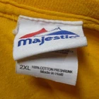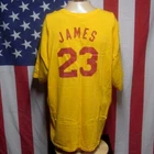 CLEVELAND CAVALIERS retro 2XL tee LeBron James basketball T shirt throwback 70s This is a previously-owned, adult-double-extra-large (2XL / XXL), yellow T-shirt with “Cavaliers / Cleveland” printed on the front and “James / 23” printed on the back. It measures approximately 24 inches (from underarm seam to underarm seam), about 29 inches from back collar and is in good shape, as it shows some discoloration in areas and hairline cracks in the graphics (see picture) (Majestic brand, 100% cotton). I originally purchased this for my father circa 2003-2008... Guard/forward LeBron James was selected with the first overall pick in the 2003 NBA Draft by the Cleveland Cavaliers, directly out of high school at the age of 18. Now a member of the Los Angeles Lakers, he is widely considered one of the more gifted and versatile players in the league, serving as one of its more prominent figures. Of note, he is one of the few players in the league who can play 4 of the 5 positions well… Powered by SixBit's eCommerce Solution