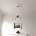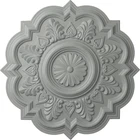 Our sturdy medallions are made of the highest quality material, for a fraction of the cost of traditional plaster or wood. Our green, environmentally friendly material can be painted, stained, marbleized or faux finished making it ideal for a variety of interior and exterior applications. Easy installation using common woodworking tools and adhesive, provides a dramatic change with instant elegance and personality. Add luxury and attractiveness to an average ceiling fan, uninspiring light fixture, or get creative by mounting them on the wall for an innovative look. We offer -piece ceiling medallions for ease of installation and abstract design options as well. With more than 400 styles to choose from and simple installation we are sure to have the perfect medallion to inspire a new project for the designer in you. Dimensions: 20-1/4 in. Outside Diameter x 1-1/2 in. Projection x 6 in. Canopy Lightweight for quick and easy installation Exquisite detail with huge collection of exclusive designs Can be cut, drilled, glued or screwed with common tools. Factory primed and ready for paint or faux finish Add a high-end upgrade inexpensively. Instant renovation with minimal time and effort