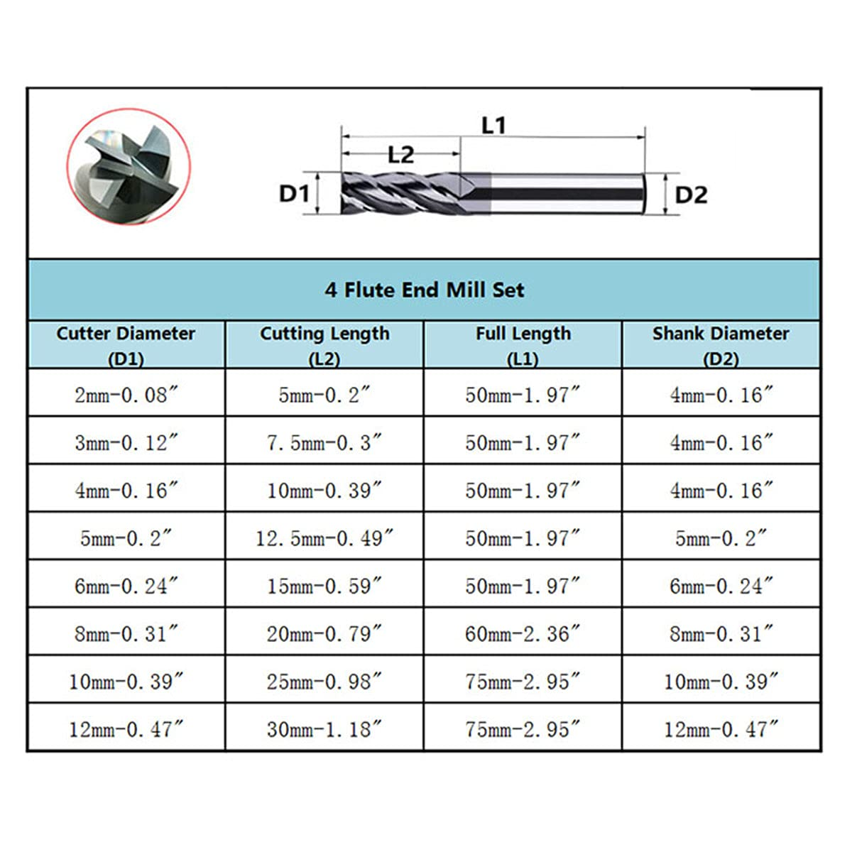 Store New Arrivals Add to Favorite View Feedback Contact CNC End Mill Set, Carbide Tungsten Steel 4 Fultes Milling Cutter, Router Bits Rotary Bits Tool Straight Shank 2-12Mm 8Pcs Description Item model number 2-12 Cut Type Rounded Brand Home of quality tools Tolerance Held Precision Cutting Diameter 12 Millimeters Item Weight 11.3 ounces End Cut Type Flat End Shape Round Size 2mm;3mm;4mm;5mm;6mm;8mm;10mm;12mm Number of Cutting Edges 4 Number of Flutes 4 Finish Type Unfinished Package Dimensions 5 x 4.17 x 1.81 inches Manufacturer Home of quality tools 2-12mm 4Flutes 8PCS Carbide Metric End Mill Set: This end mill set includes 8 diameter sizes of 2mm, 3mm, 4mm, 5mm, 6mm, 8mm, 10mm, 12mm, satisfy your different needs. Material: Tungsten steel Carbide has the advantages of high hardness, wear resistance, toughness and corrosion resistance. It also has stronger heat resistance than HSS, so it can maintain hardness even at high temperature. Tungsten steel is mainly composed of tungsten carbide and cobalt, accounting for 99% of all components. Tungsten steel is also called cemented carbide and is considered to be the teeth of modern industry. Detail design: High-precision cutting edge with suitable negative forefoot design, taking into account the strength and sharpness of the cutting edge. At the same time, the large core diameter is used to enhance the rigidity of the tool and make the cutting and chip removal stable. Wide Application CNC End Mill:It can be used on many fields, such as metal processing, CNC machining and engineering using. Large chip flute design for smoother chip removal, making the workpiece smoother and brighter. Package Included:8 x 4 Flutes carbide metric End Mill Cutter set 2-12mm End Mill Set: This end mill set includes 8 diameter sizes of 2mm, 3mm, 4mm, 5mm, 6mm, 8mm, 10mm, 12mm, satisfy your different needs. Material: Tungsten steel Carbide has the advantages of high hardness, wear resistance, toughness and corrosion resistance. It also has stronger heat resistance than HSS, so it can maintain hardness even at high temperature. Tungsten steel is mainly composed of tungsten carbide and cobalt, accounting for 99% of all components . Tungsten steel is also called cemented carbide and is considered to be the teeth of modern industry. Detail design: High-precision cutting edge with suitable negative forefoot design, taking into account the strength and sharpness of the cutting edge . At the same time, the large core diameter is used to enhance the rigidity of the tool and make the cutting and chip removal stable. Wide Application CNC End Mill: It can be used on many fields, such as metal processing, CNC machining and engineering using. Large chip flute design for smoother chip removal, making the workpiece smoother and brighter. Package Included: 8 x 4 Flutes End Mill Cutter. High quality carbide tungsten steel material - excellent wear resistance and greatly improved milling life Chamfer design - easy to install, round and smooth handle with precision chamfer saving tool change time Grinding spiral angle - unique chip flute shape prevents chip formation Double-layered blade with burr - double-edged milling with cutters for increased edge rigidity and effective burr removal ABOUT US We offer the best prices around on high quality products. Our E-store includes media such as books, movies, music and games while offering electronics, toys, sporting apparel, clothing, tools, general home, garden items and more. SHIPPING We are always working hard to ensure your package arrives as soon as possible. Please understand that some factors like weather, high postal traffic, and the performance of shipping companies are outside of our control. We offer free shipping to the lower 48 states and ship within 2 business days of payment, usually sooner. We do not accept P.O. Boxes. Please provide a physical address. RETURNS We offer a 30-Day Return Policy on items which you are not completely satisfied with. You have the option for a full-refund or an exchange of the item. No returns are available on items shipped outside of the USA. PAYMENT We accept PayPal. CONTACT US This page content is yet to come Please ad us to your favorite seller and visit again later Thank You CUSTOMER SATISFACTION We try our very best to make sure every customer is completely satisfied. If there's a problem, message us! We're happy to help.