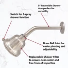 This sleek round 5-inch diameter with 5-function filtered shower head paired with the solid brass 8-inch shower arm is the perfect addition to your showering experience with it's generous spray options. The high-pressure shower head offers five spray functions for soothing shoulder-to-shoulder, neck and back massage for tension and relaxation. Spray functions are: saturating, massage, saturating & massage, dot massage and saturating with a 1.8 GPM flow rate with adjustable spray face controls regulation of flow. The triple action filtration cartridges in both units remove impurities, heavy metals such as lead, mercury, organic chemicals like hydrogen sulfide and chlorine and other harmful substances from your water while enhancing the water's cleansing abilities by releasing beneficial natural minerals that the human body needs. Filter cartridges should be replaced every six (6) months, 10,000 gallons or if it begins to discolor. SHF filter unit is with models: SCH900F, SHF5700 and SAF and are sold as a -pack. Replacing the cartridge is quick and easy, just swap the old cartridge with a new , flush with hot water for (1) minute, and it’s ready for use. Available in a variety of stylish finishes, this item is sure to complement your existing fixtures. VISIT OUR STOREFRONT for more Kitchen and Bath items to stylize your home with convenient functionality and beauty. THREE-LAYER FILTRATION SYSTEM: LAYER : PP Cotton filter removes micro mud, rust and impurities with a diameter larger than 5 microns, LAYER : Activated carbon filter reduces scale build-up, removes chlorine, heavy metals and organic substances, LAYER THREE: stone filter removes chlorine and impurities, organic matter and miscellaneous bacteria and releases natural minerals that the human body needs SHOWER HEAD: Sleek round 5-inch 5-function spray adjustable shower head with low-maintenance spray nozzle resists scale buildup SPRAY FUNCTIONS: saturating, massage, saturating & massage, dot massage & saturating ADJUSTABLE: Easily and smoothly rotates position with brass ball joint EASY INSTALLATION: Simple and tool-free installation for a hassle-free experience SHOWER ARM: Solid brass wall mount 8-inch shower arm with 1/2 inch IPS threaded on both ends FLOW RATE: Maintains 1.8 GPM