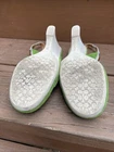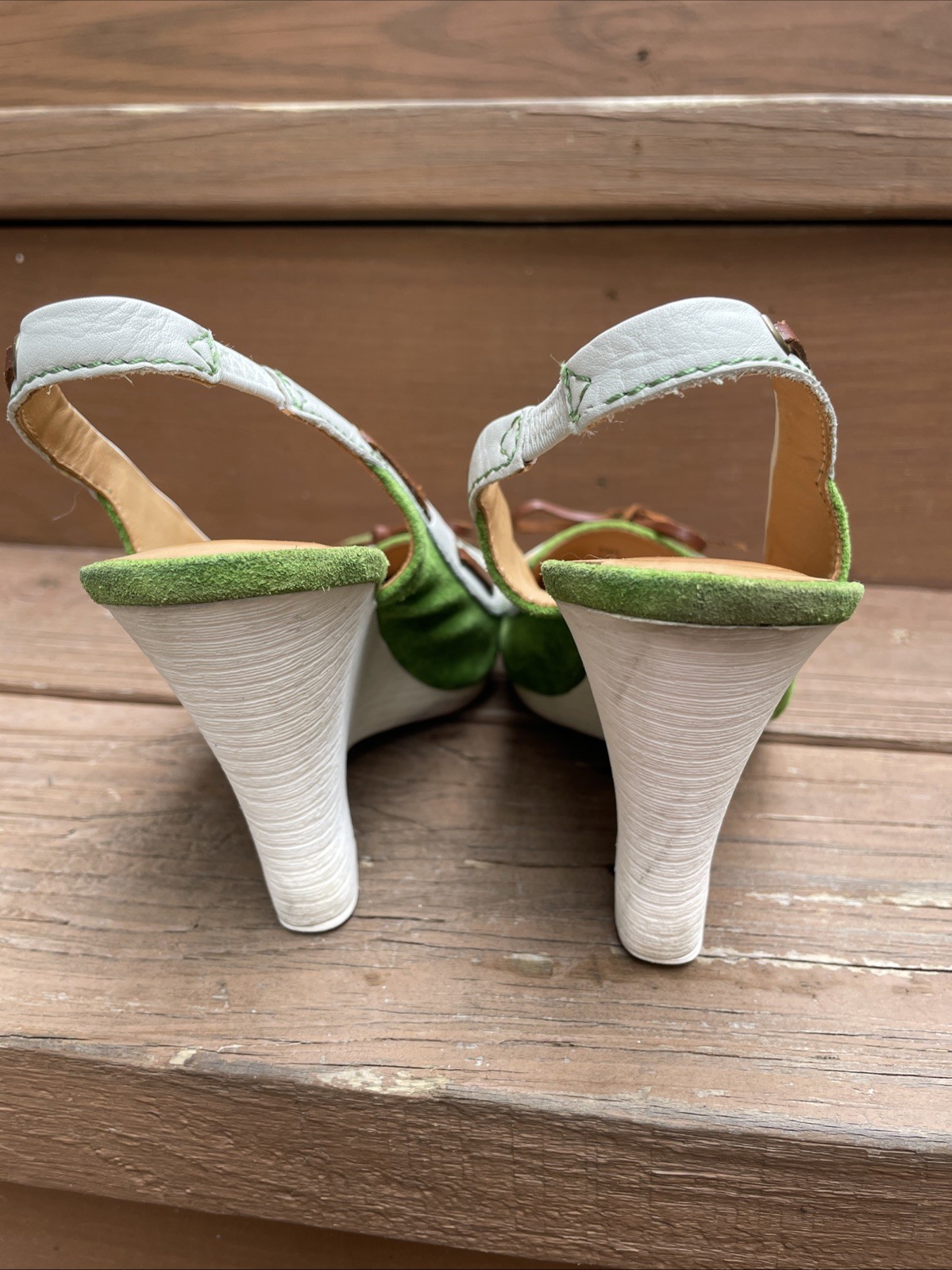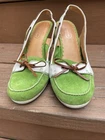 The COACH Athena Size 6.5 Vintage Slingback Suede Leather Shoes in Lime Green Moccasin are a stylish and high-quality pair of heels with a round toe shape and high wedge heel. Made of luxurious leather with a multicolor suede coating, these vintage shoes exude sophistication and elegance. Perfect for career wear or adding a touch of classic charm to any outfit, these designer heels showcase the timeless luxury and craftsmanship that Coach is known for. Ideal for those who appreciate vintage fashion and high-end style.