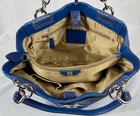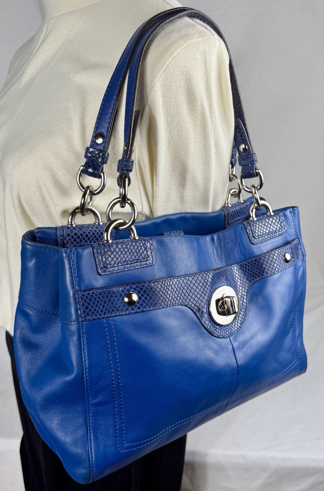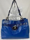 πππTHIS BEAUTIFUL BAG IS AN ORGANIZERS DREAM!! COACH BLUE Penelope Leather Snakeskin Accent Satchel Turn-Lock Bag F16531 The Coach Blue Penelope Leather Satchel is a stylish and versatile handbag perfect for various occasions, including travel, weddings, parties, casual outings, workwear, and business meetings. This medium-sized bag features a rectangular shape with a smooth leather finish and silver hardware accents. The blue leather handles and snake trim add a touch of sophistication. it has an outside slip pocket with a classic Coach Turn-Lock close that is perfect for your phone, keys or glasses. The inside is lined and includes various slip pockets, a center zipper for wallet or valuables and a zipper pocket. This designer bag from Coach is a fashionable choice for those who appreciate quality craftsmanship and organization. It will give any outfit a pop of color and you can dress it up or down. It will be your favorite travel companion and a welcome addition to your Wardrobe. ***PLEASE LOOK AT ALL OF OUR PICTURES FOR CONDITION, MATERIALS AND MEASUREMENTS. Props are not included like phones, bags, mannequins (or her clothes), etc. ***WE GUARANTEE THAT OUR ITEMS ARE AUTHENTIC OR WE GIVE YOU YOUR MONEY BACK. *** We combine shipping to save you money on multiple items SHIPPED TOGETHER. You pay the highest shipping on one item and the next three items are $1.50 shipping per item. The 5th item will start the cycle again. We hope this helps you. π Inventory #0002/52560 THANK YOU FOR CONSIDERING OUR ITEMS AND PLEASE CHECK OUT OUR EBAY STORE - ebay.com/str/morinfashions ***Please add us to your list of βFavorite EBay Storesβ. Just click the Heart next to Morin Fashions so you can find us again! π We are not affiliated with or represent any other company than Morin Fashions. Thanks Again, HAVE A BLESSED DAY! πππ ebay.com/str/morinfashions