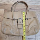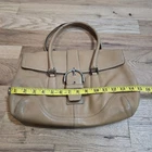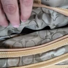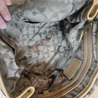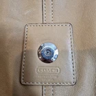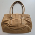Enhance your style with this exquisite Coach brown leather handbag. The exterior is made of high-quality leather, while the interior is lined with brown linen. The bag features a silver hardware color that adds a touch of elegance. It has a medium/large size, and it's perfect for women who want to carry all their essentials in a fashionable way. * Please See All pictures. No charm/tag. A few marks on the back of purse.