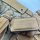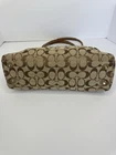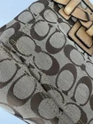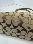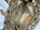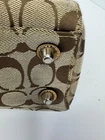 Well cared for pre owned signature canvas purse with leather trim. There are some areas of discoloration which are shown in pictures.
