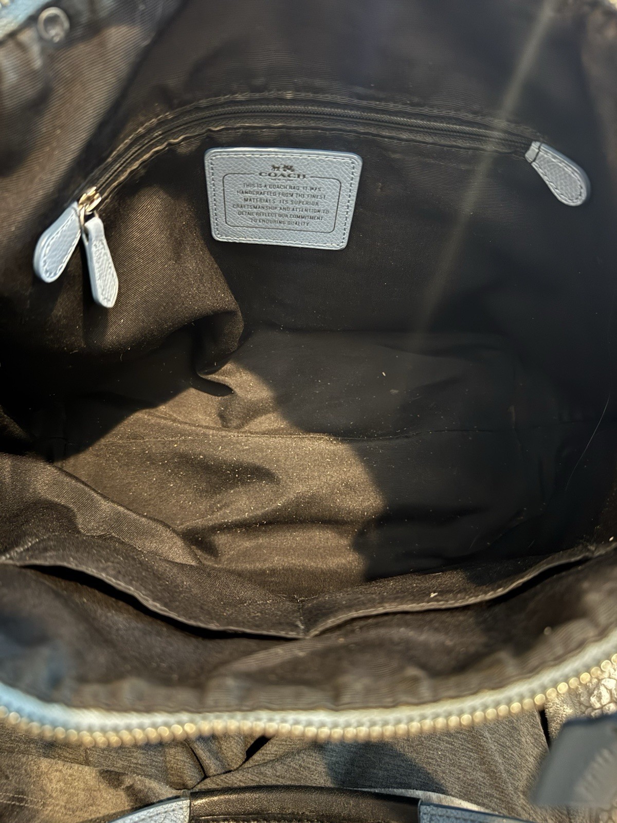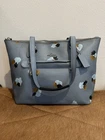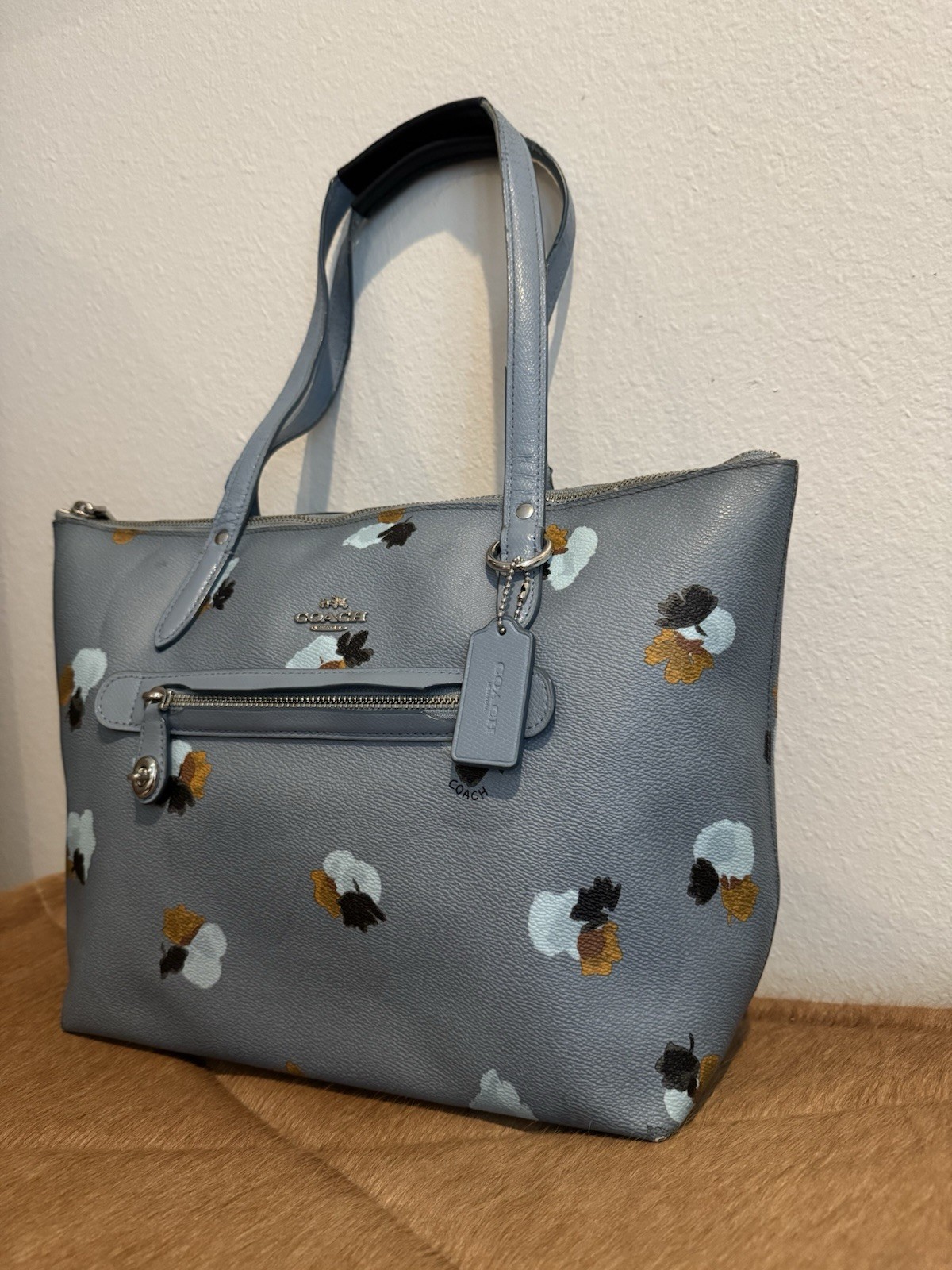 The COACH CORNFLOWER BLUE FLORAL TAYLOR TOTE SHOULDER BAG is a stylish and practical accessory for women. Made with coated canvas material, this tote features a beautiful floral pattern in a vibrant blue color. The versatile design of the tote makes it perfect for carrying daily essentials while adding a touch of sophistication to any outfit. The Coach Taylor model showcases the brand's quality craftsmanship and attention to detail, making it a sought-after addition to any fashion-forward woman's collection. See photos for condition.