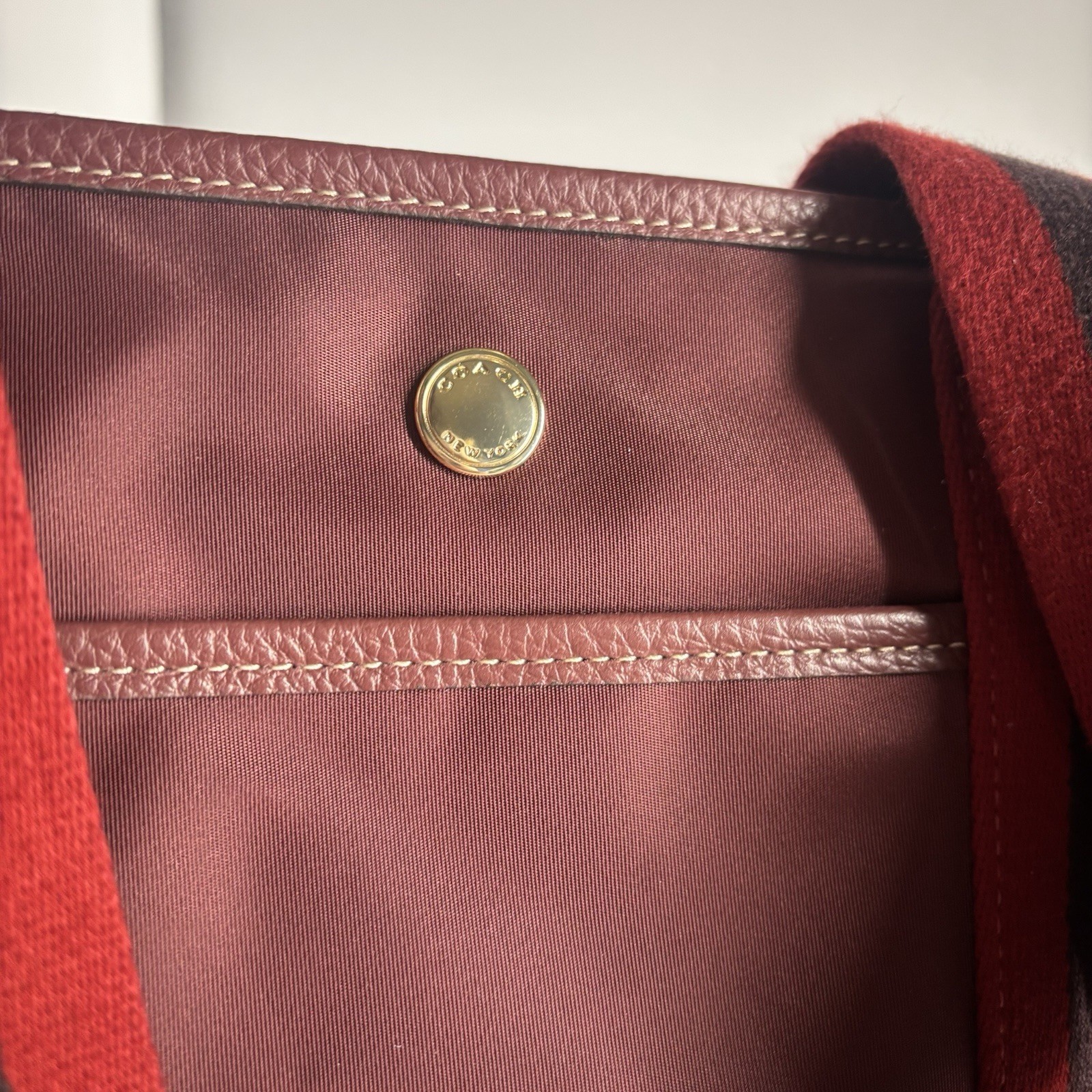 Absolutely love this Coach tote! The wine color is rich and versatile, while the nylon body keeps it lightweight yet durable. Perfect size for work or travel, with a roomy interior and secure zip top. The gold accents and leather details add a touch of luxury—such a stylish everyday essential.