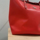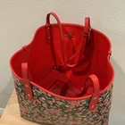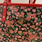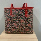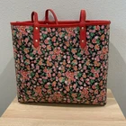 This COACH F57668 POSEY FLORAL REVERSIBLE CITY TOTE W WRISTLET in red floral is a must-have for any fashion-forward woman. The bag is made of high-quality leather and features a reversible design, making it perfect for any occasion. The bag width is 16 inches, while the bag height is 11.5 inches, making it a large-sized tote. The bag length is also 16 inches, and the strap drop is 10 inches. The exterior of the bag is multicolored and features a floral pattern, while the lining color is red. The bag is perfect for travel, party/cocktail events, casual outings, and business meetings. The bag also comes with a wristlet accessory for added convenience. This COACH tote is a stylish and practical choice for any woman. Minor discolorations noted on bag and on attached clutch. Minor wear on red side bottoms corners. Bag is reversible. Genuine COACH bag. Please ask any questions before purchasing, thank you!
