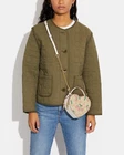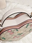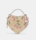Coach Heart Crossbody In Signature Canvas With Heart Cherry Print Brand new with tags Limited edition COLOR: Gold/Light Khaki Multi 100% Authentic Product Details Bestseller Signature coated canvas and crossgrain leather Two credit card slots Double zip closure, fabric lining Top handle with 2" drop Detachable strap with 22 1/2" drop for shoulder or crossbody wear 6" (L) x 7" (H) x 2 1/2" (W) Style No. CE653 Price is firm
