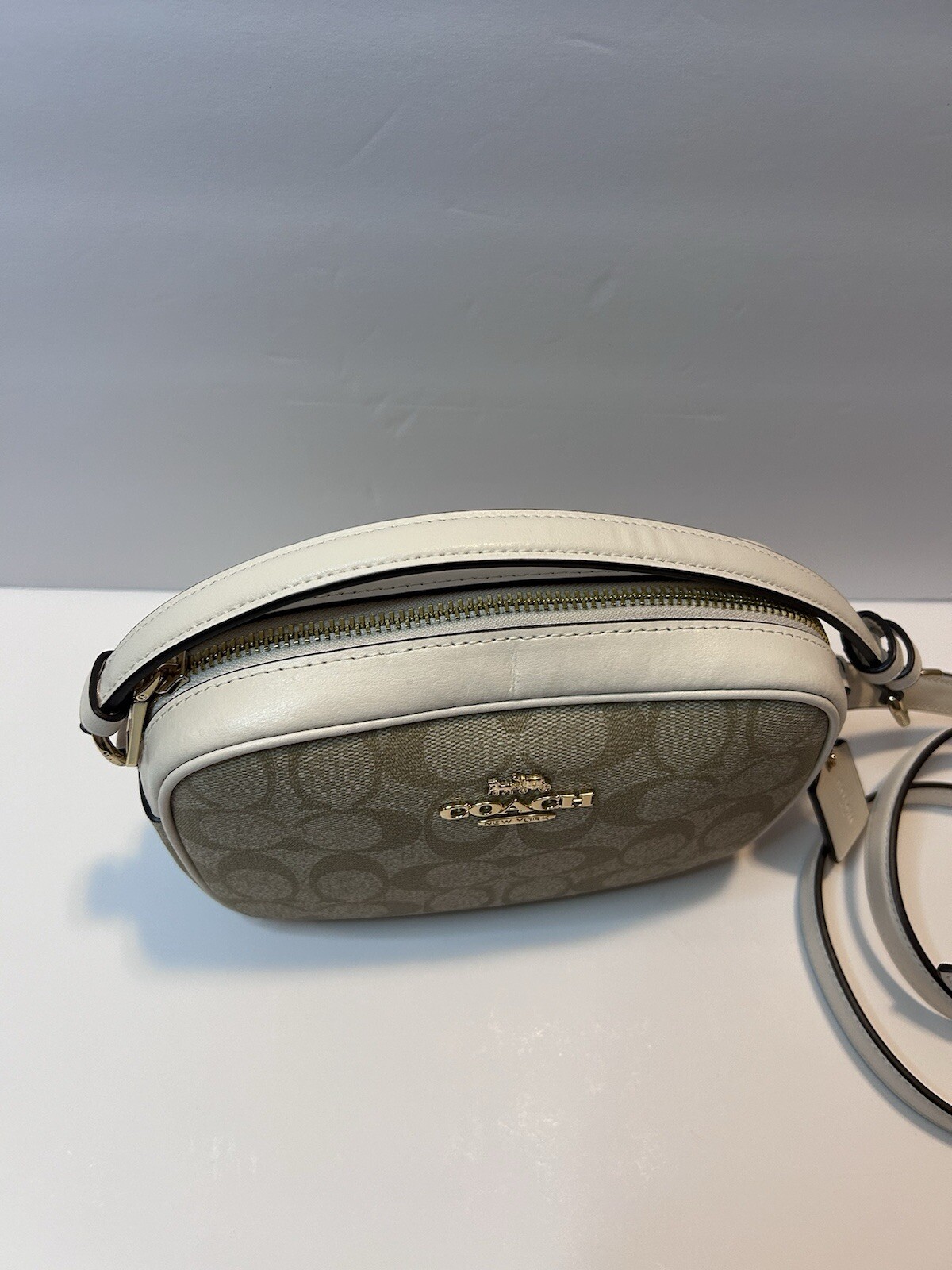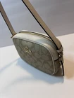 Gold hardware Crossbody strap with 22” Signature coated canvas Pockets inside 8”Lx5”Hx3”D Zipper closure Tag coach Excellent condition