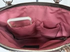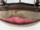 πππ COACH KHAKI Signature Satin Horse Carriage Brown Leather Purse Bag 14482. This is a TRENDSETTER BAG! You wonβt see yourself coming and going with this Classic COACH!! The Coach Khaki Signature Satin Horse & Carriage and Brown Leather Purse, 14482, is a stylish and versatile tote/shopper/satchel handbag perfect for various occasions such as travel, weddings, parties, casual outings, workwear, and business meetings. Made from high-quality leather with a coated finish and featuring the iconic Coach Classic Horse and Carriage Pattern, this bag adds a touch of elegance to any outfit. With practical features like interior and exterior pockets, a mobile phone pocket, and a zip closure, this handbag is both fashionable and functional, making it a must-have accessory for any wardrobe. ***PLEASE LOOK AT ALL OF OUR PICTURES FOR CONDITION, MATERIALS AND MEASUREMENTS. **Props are not included like phones, bags, mannequins (or her clothes), etc. ***WE GUARANTEE THAT OUR ITEMS ARE AUTHENTIC OR WE GIVE YOU YOUR MONEY BACK. We clean and recondition every bag and we ship our purses in boxes to protect them. A Preloved bag may have signs of wear so please see all of the pictures. *** We combine shipping to save you money on multiple items that are SHIPPED TOGETHER. You pay the highest shipping on one item and the next three items are $1.50 shipping per item. The 5th item will start the cycle again. We hope this helps you. π Inventory #0994/1025 THANK YOU FOR CONSIDERING OUR ITEMS AND PLEASE CHECK OUT OUR EBAY STORE - ebay.com/str/morinfashions ***Please add us to your list of βFavorite EBay Storesβ. Just click the Heart next to Morin Fashions so you can find us again! π We are not affiliated with or represent any other company than Morin Fashions. Thanks Again, HAVE A BLESSED DAY! πππ ebay.com/str/morinfashions (List us under Purses in your contacts)