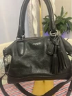 This stylish and timeless Coach satchel is crafted in genuine leather with silver hardware and leather tassel accents. A versatile piece perfect for everyday use or dressing up your look. 📌 Details: • Material: Genuine leather • Color: Black • Period: Contemporary • Dimensions: 14.25” W x 12.0” H x 5.0” D • Handle Drop: 7” • Shoulder Strap: Adjustable, up to 18” 📌 Condition: Excellent pre-owned condition with minor scuffs to leather exterior (see photos). 🎯 Crossbody + Top Handle | Classic Coach Quality | Clean Interior