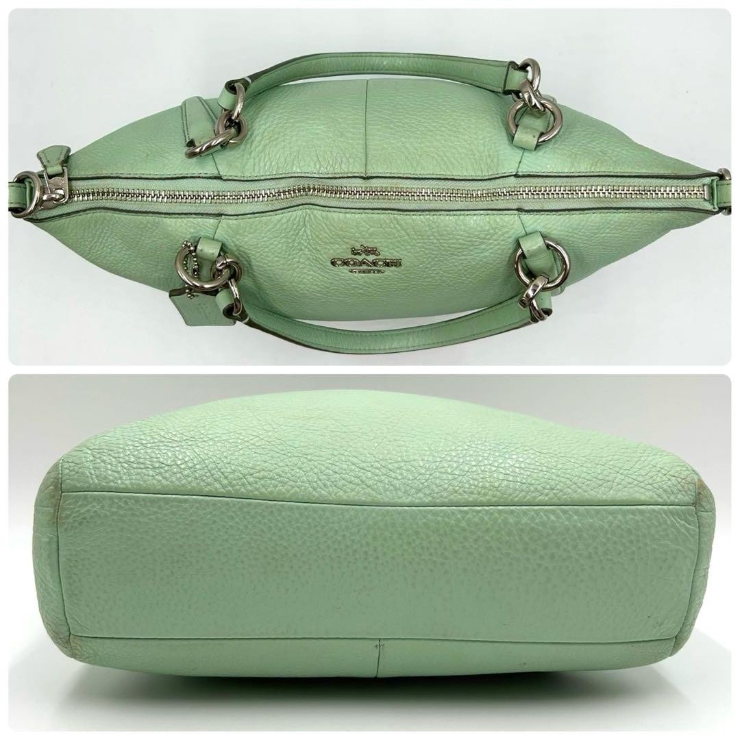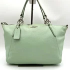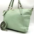 Absolutely love this Coach tote! The mint green leather is so stylish and versatile—perfect for daily use or a night out. The size is just right, fitting all my essentials without being bulky. The shoulder strap is super comfortable, and despite some minor wear (as expected for pre-loved), it still looks amazing. The interior stains are barely noticeable. A fantastic deal for an authentic Coach bag!