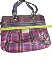 COACH POPPY TARTAN GLAM Purple Patent Leather Shoulder Shopper Purse 15886 Tote