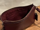 COACH Wristlet Pebble Leather Wallet Zip Burgundy Strap Keychain gold Logo. Condition is Pre-owned. Shipped with USPS Ground Advantage.