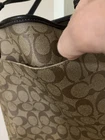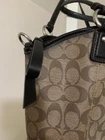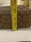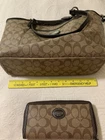 Elevate your style with this beautiful Coach handbag and matching wallet set. The brown exterior is complemented by the iconic Coach logo pattern and silver hardware for a touch of elegance. The large size and fabric lining make it perfect for everyday use, while the leather handle/strap ensures comfort and durability. The Coach is in excellent condition for except some wear on the bottom corners. There are 2 pockets & a zipper pocket inside & 2 pockets on outside w/zipper closure on top. The purse is deep enough for most anything like the Husband’s wallet, keys, & his glasses while on vacation. The wallet features 12 pockets for credit cards etc…, plus it has 5 pockets for miscellaneous & 1 zipper pocket & a pocket on the backside. Brown satin lining an it zips all the way around to close. Not sure as to what the exterior material is but very durable for your typical Coach handbag (tote). This set is from the Coach Outlet product line and has been gently used with minimal wear. It is in excellent condition and has been kept very clean. It's the perfect addition to any wardrobe and a great gift for any occasion. Please look at the pictures for details. Shipped USPS Ground Advantage Mail. ***I ship within 24hrs after payment is received unless it’s the weekend or a holiday then it’s the next business day ***
