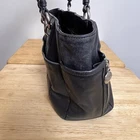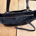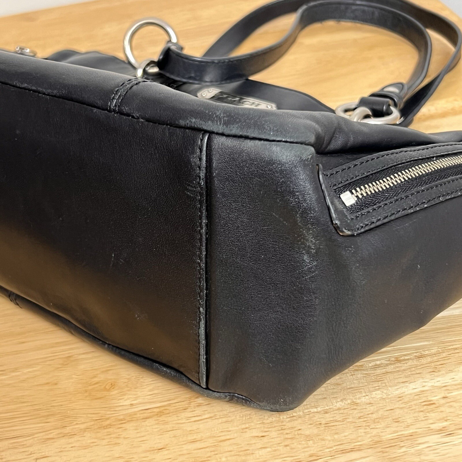 COACH F19252 REHAB East West Gallery Black Smooth Shiny Leather Shoulder Tote. Preowned needs some TLC it is a rehab bag!! There is rubbing on the corners and on the back of the bag, fraying and loss of edging on the handles, some surface scratches/blemish on the leather that can be seen in pictures. All zippers work, and the inside of the purse has no rips, tears, or stains. There may be a little dust from use, but it has been clean with no odor. Please reach out with questions or if you need to see more photos. Style number F19252 Smooth black leather with silver zipper detail Black satin interior Large exterior pocket Inside zip, cell phone and multifunction pockets Zip-top closure Fabric lining Dimensions: 12.5" (L) x 9" (H) x 4.5" (W) Handles with 8.5" drop Thank you for stopping by!