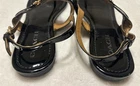 COACH Sandals Flats 9 B Caterine Black Patent Leather T-Strap Thong Sling Back