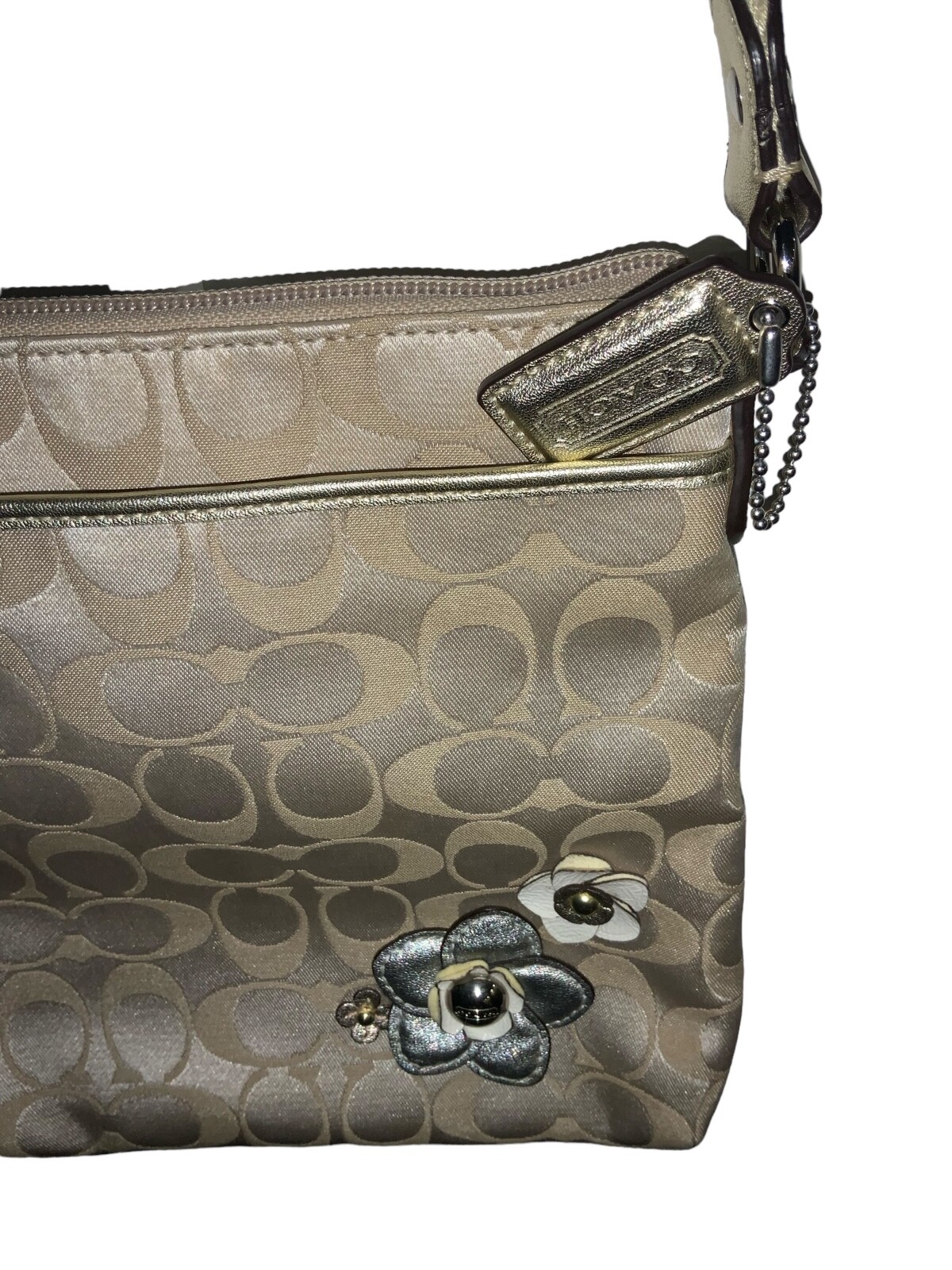 This listing is for a COACH Signature C Tan Multicolor Gold Trim Floral Applique Swingpack Crossbody Number F49307. ALL items are sold as-is so please feel free to ask questions before bidding or purchase. PLEASE LOOK AT ALL PHOTOS INCLUDED WITH THE LISTING. TERMS OF SALE- Returns are not accepted unless the item is not as described. This does not include the item not fitting so please ask for measurements if not in the listing and insole measurements for shoes to ensure fit. I do not know whether an item runs small or large, I will provide the size that has been listed on the item unless one is not visible and measurements will be provided and this omission of size noted in the item description. Contact me as soon as possible if there is an issue with an item not being as described. The original tags must still be attached to the item and the item must be in the original condition in which you received it. SHIPPING- Items will be shipped within 5 business days of receipt of payment. If you need your item by a certain time that will not fall within the 5 business day shipping timeframe, please reach out to me to request that. I will try my best to accommodate that request. Please be aware that the shipping time doesn't include weekends or holidays. eBay will provide you with tracking information. Once an item is shipped and it is in the possession of the carrier (USPS or FedEx), I have no control over your package. If there is a delay or issue while in transit the BUYER would need to contact the carrier. USPS Customer Service (1-800-ASK-USPS). FedEx Customer Service (1-800-463-3339). All items will include additional insurance coverage beyond what is provided by the carrier for loss or damage. Please contact me after an attempt has been made to contact the carrier and if there are still issues I will file a claim to recover the cost of your item.