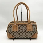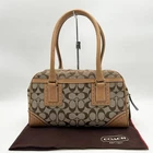 COACH handbag signature Canvas, Leather Beige, Camel with Dust bag Used Description Model Number: A0771-10532 Color: Beige, Camel Design: Signature Material: Canvas, Leather Size: Height (excluding handle) 18cm, Width 31cm Depth 13cm, Handle drop 20cm Accessories: Dust bag This design features the classic signature pattern throughout. It has a large capacity and a zipper, making it very easy to use. Although there are no particularly noticeable damages, there is some overall wear and tear. Please check the images and understand that this is a pre-owned item before purchasing. Payment We only accept PayPal payments. Please pay within 6 days after auction is finished. International Buyers - Please Note Import duties, taxes and charges are not included in the item price or shipping charges. These charges are the buyer's responsibility. Please check with your country's customs office to determine what these additional costs will be prior to bidding/buying. These charges are normally collected by the delivering freight (shipping) company or when you pick the item up - do not confuse them for additional shipping charges.