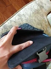 Alpha men's shoulder bag with scratches, dirt, and clasp damage