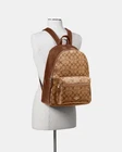 The COACH Backpack Pvc Leather Signature Daypack Bag in beige brown is a classic and stylish medium-sized backpack perfect for women on the go. Made with luxurious leather and featuring the signature Coach pattern, this bag exudes sophistication and timeless elegance. The brown exterior and gold hardware add a touch of luxury, while the nylon and leather handle/strap material provides durability and comfort. The zip closure, strap accent, and zipper detail add functionality and flair to this versatile daypack, making it a must-have accessory for any fashion-forward woman.