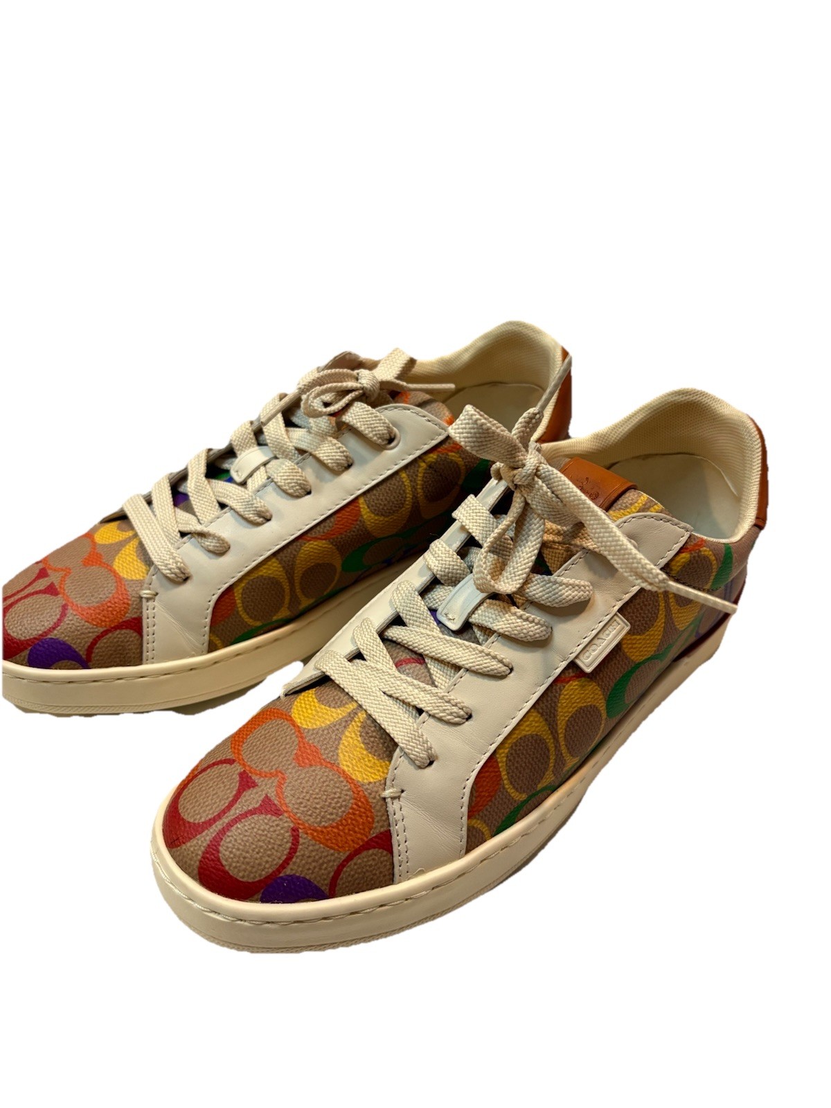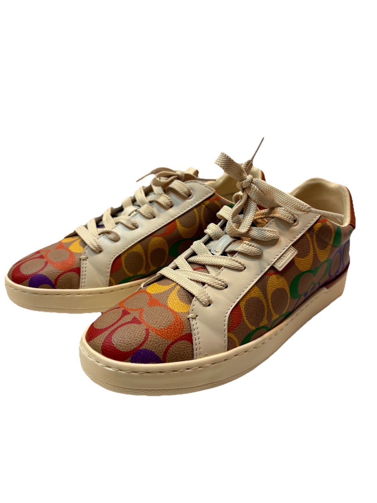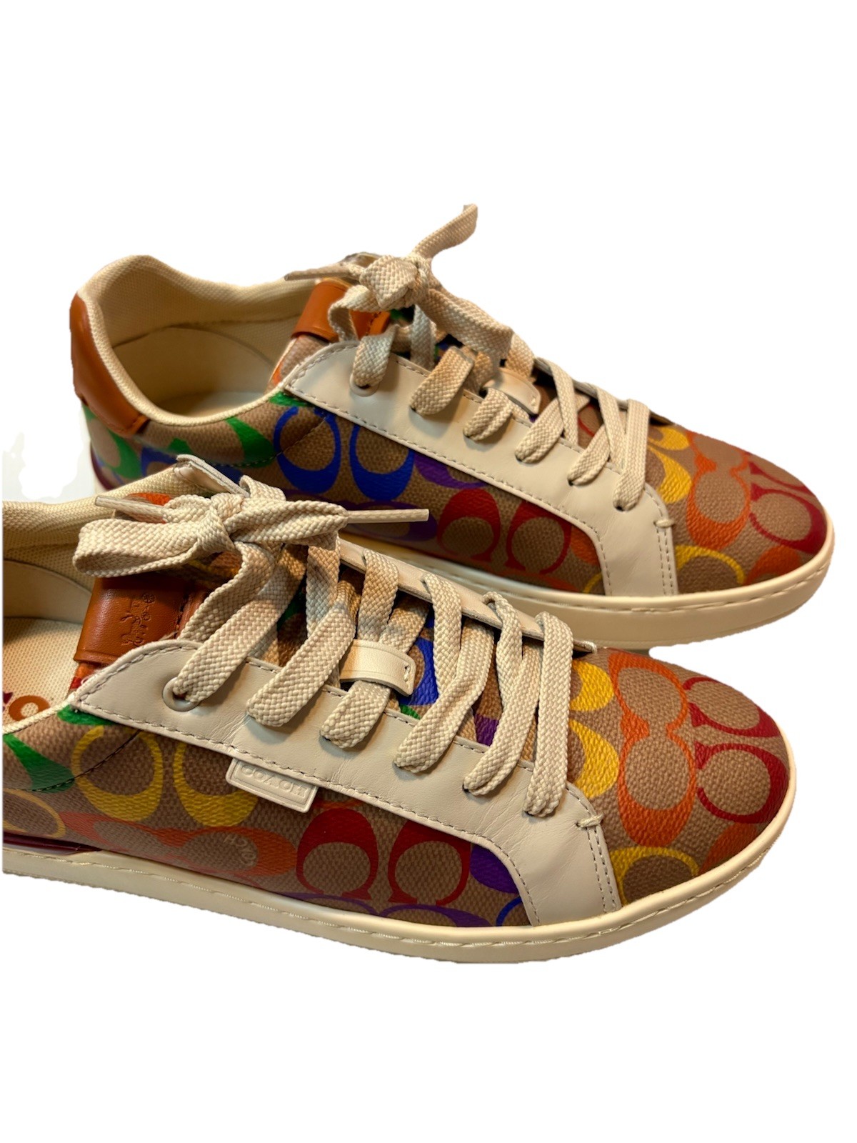 Coach Lowline Low Top Sneaker in Rainbow Signature Canvas. They were part of the Coach Pride Collection Product Information Brand: Coach Model: Lowline Low Top Sneaker Material: Signature coated canvas and smooth leather upper, with a fabric lining and footbed. Outsole: Rubber Technology: Features proprietary Coach CitySole technology for comfort and flexibility, and a cushioned insole for support. Fit Note: These sneakers may run large, so ordering a half size down is often recommended. Sneakers are in excellent condition. ✨ Shipping the Same Day 📦 Shipped with care 🔄 30-Day Free Returns (under not as described 💖 Thank you for shopping at Karo’s