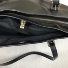 This COACH 29086 tote is made of black crossgrain leather with gold hardware accents. It features a turn lock closure and zippered top for security. The spacious interior is lined with gray fabric and includes multiple pockets for organization. The bag measures 13" in width, 11" in height, and 5" in depth, making it a great size for everyday use. The two leather handles are comfortable to hold and the bag also comes with a detachable bag charm for added style. This designer tote is perfect for any woman who wants both functionality and fashion in her handbag.